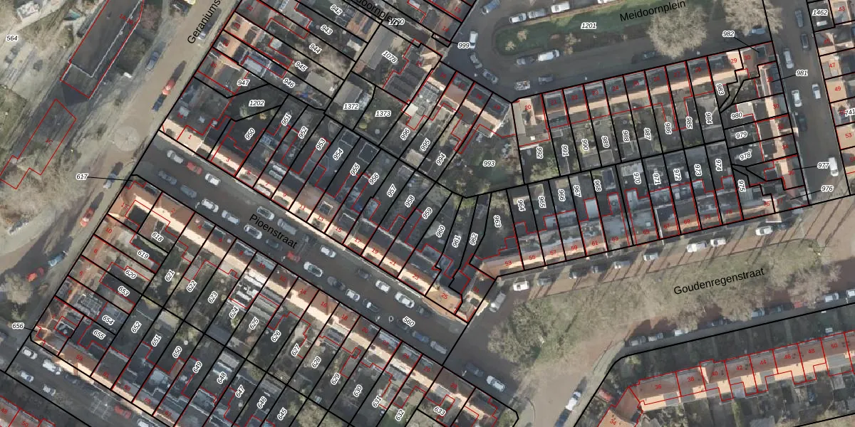 Gebruik de zoekbalk of klik op een perceel om informatie over het perceel te bekijken.