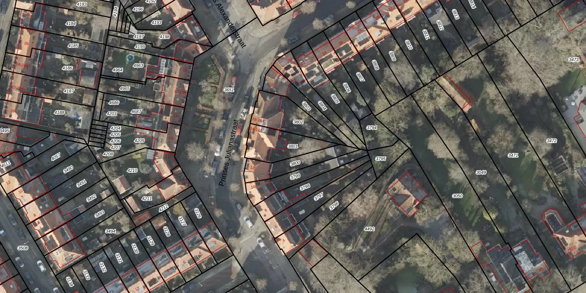 Gebruik de zoekbalk of klik op een perceel om informatie over het perceel te bekijken.