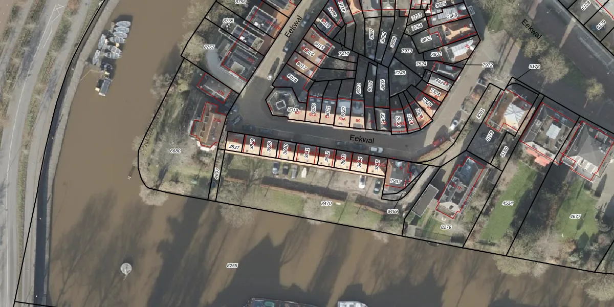Gebruik de zoekbalk of klik op een perceel om informatie over het perceel te bekijken.