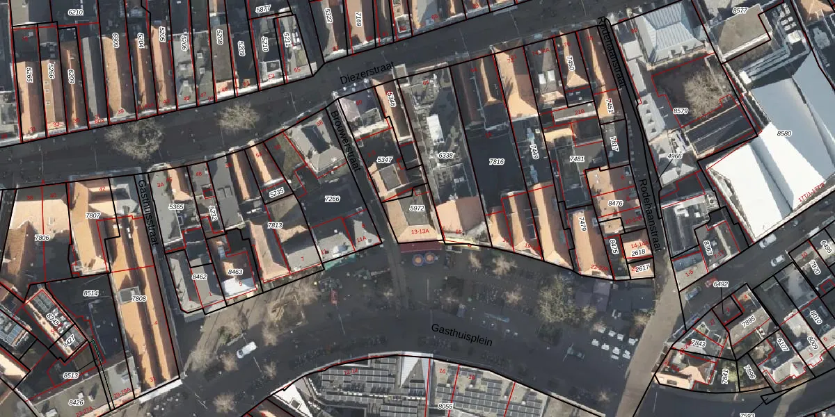 Gebruik de zoekbalk of klik op een perceel om informatie over het perceel te bekijken.