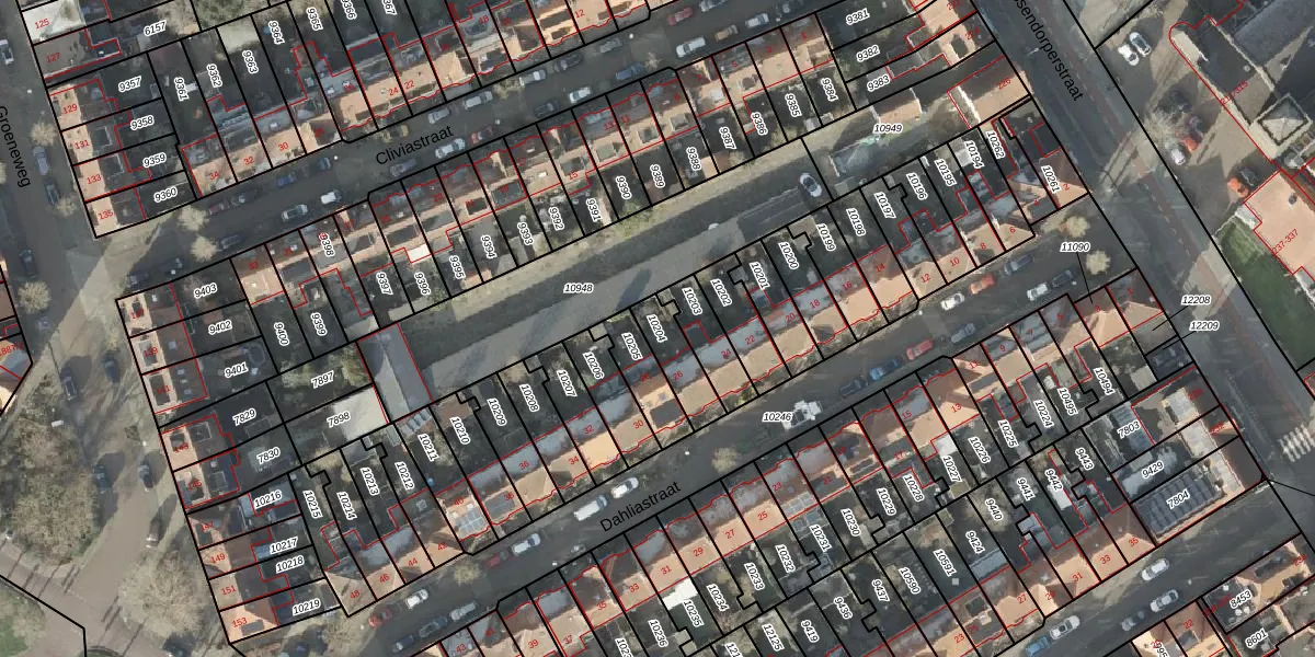 Gebruik de zoekbalk of klik op een perceel om informatie over het perceel te bekijken.