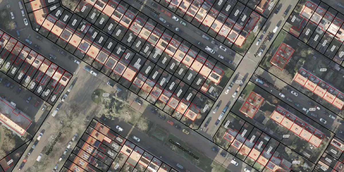 Gebruik de zoekbalk of klik op een perceel om informatie over het perceel te bekijken.