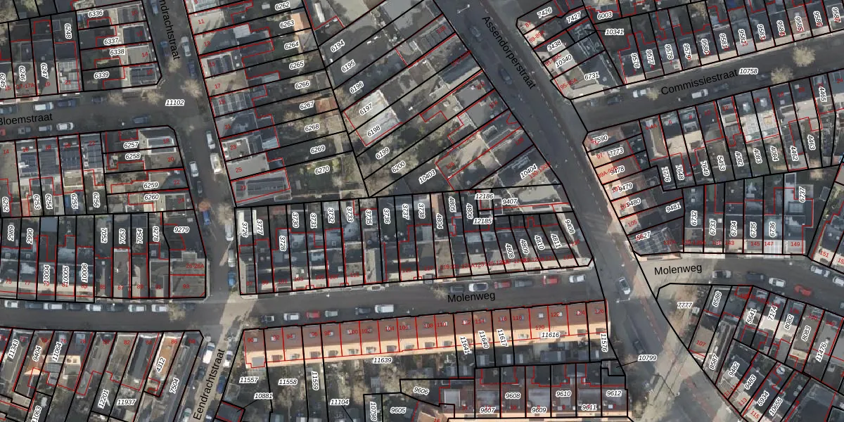 Gebruik de zoekbalk of klik op een perceel om informatie over het perceel te bekijken.