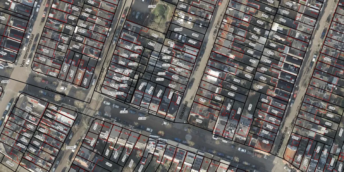 Gebruik de zoekbalk of klik op een perceel om informatie over het perceel te bekijken.