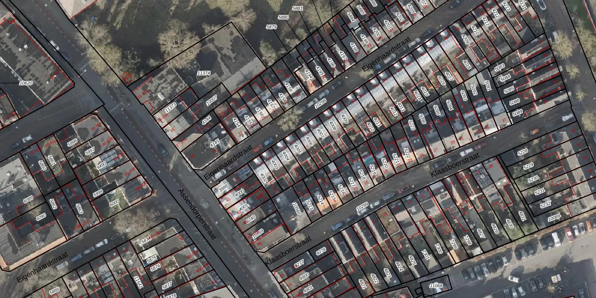 Gebruik de zoekbalk of klik op een perceel om informatie over het perceel te bekijken.