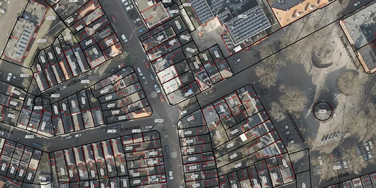 Gebruik de zoekbalk of klik op een perceel om informatie over het perceel te bekijken.