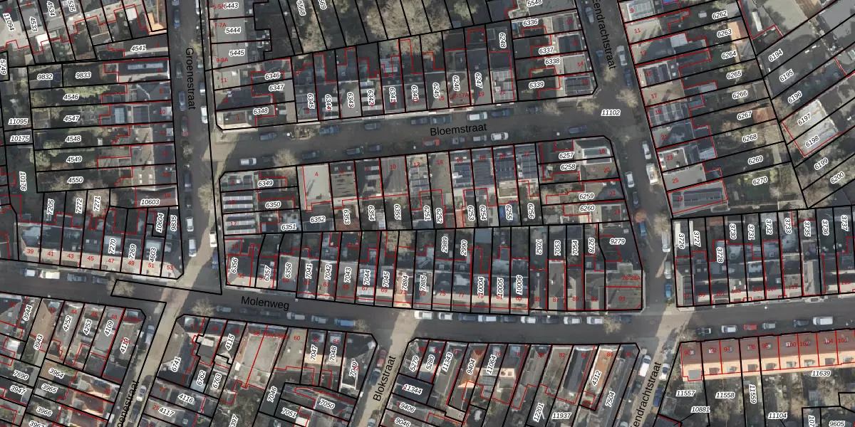Gebruik de zoekbalk of klik op een perceel om informatie over het perceel te bekijken.