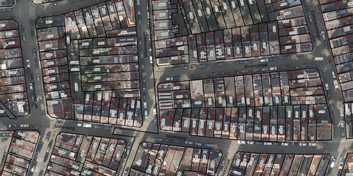Gebruik de zoekbalk of klik op een perceel om informatie over het perceel te bekijken.
