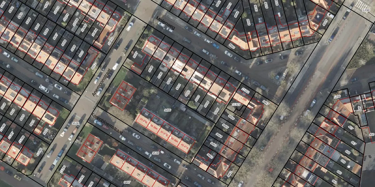 Gebruik de zoekbalk of klik op een perceel om informatie over het perceel te bekijken.
