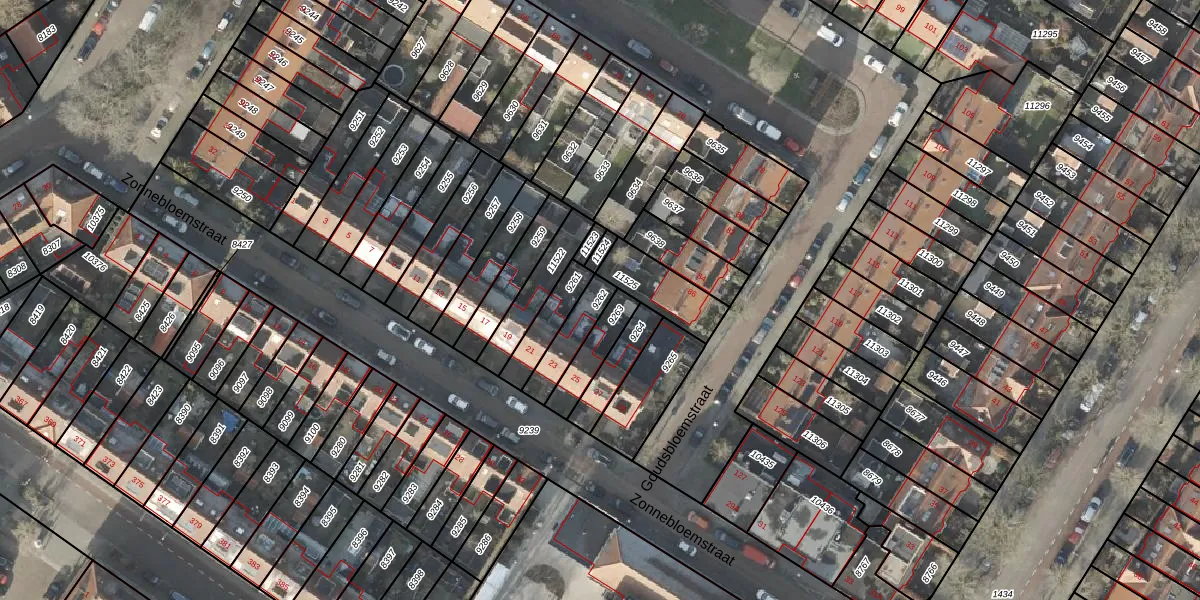 Gebruik de zoekbalk of klik op een perceel om informatie over het perceel te bekijken.