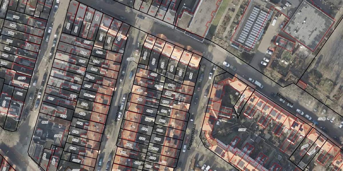 Gebruik de zoekbalk of klik op een perceel om informatie over het perceel te bekijken.