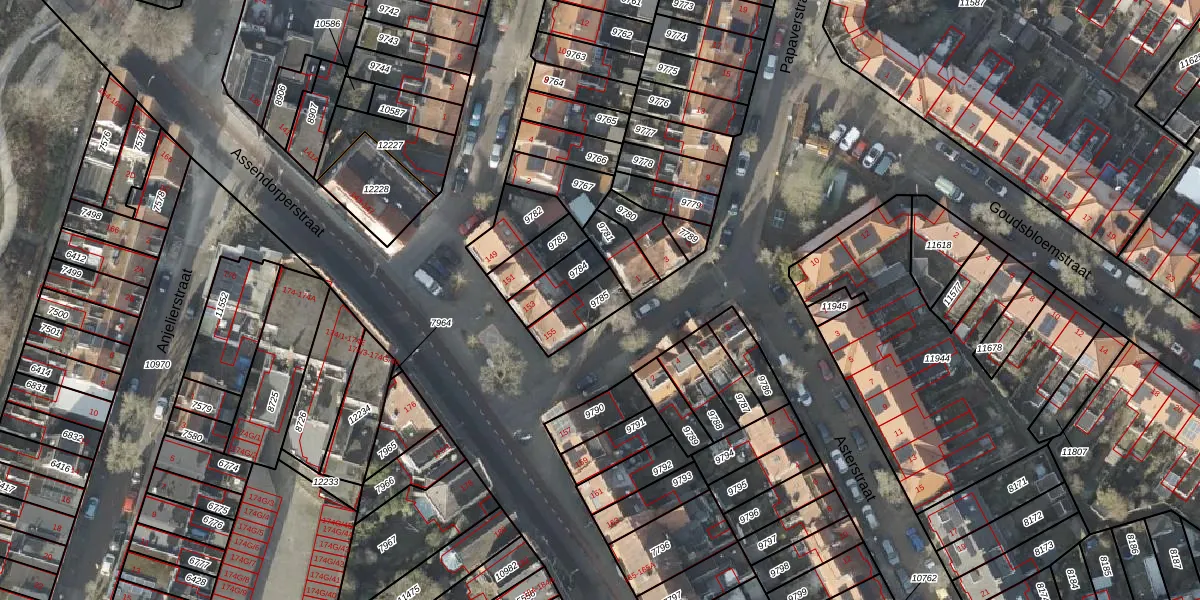 Gebruik de zoekbalk of klik op een perceel om informatie over het perceel te bekijken.