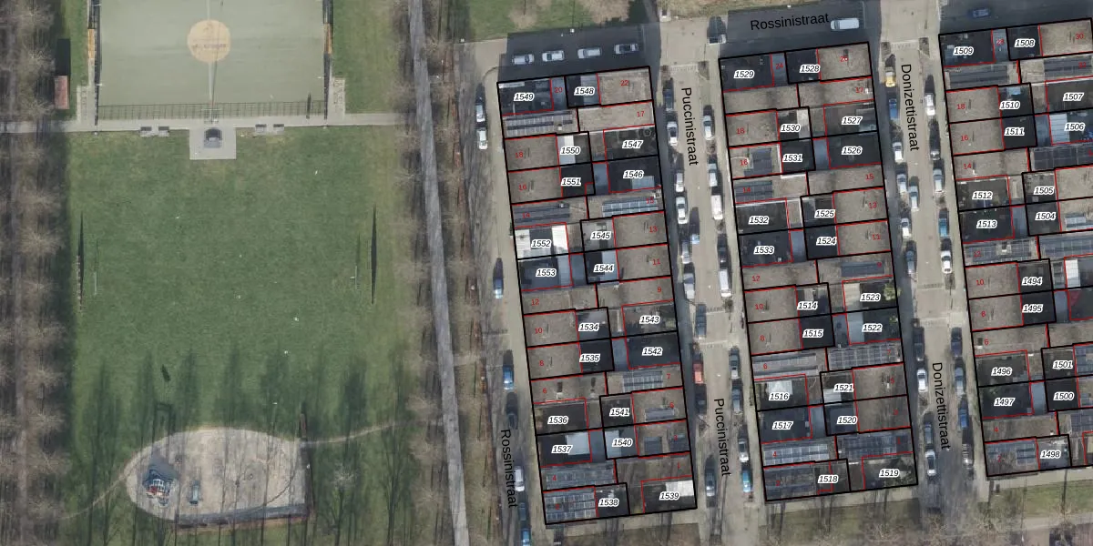 Gebruik de zoekbalk of klik op een perceel om informatie over het perceel te bekijken.