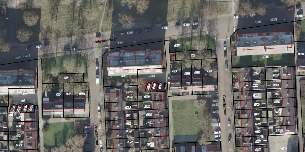 Gebruik de zoekbalk of klik op een perceel om informatie over het perceel te bekijken.