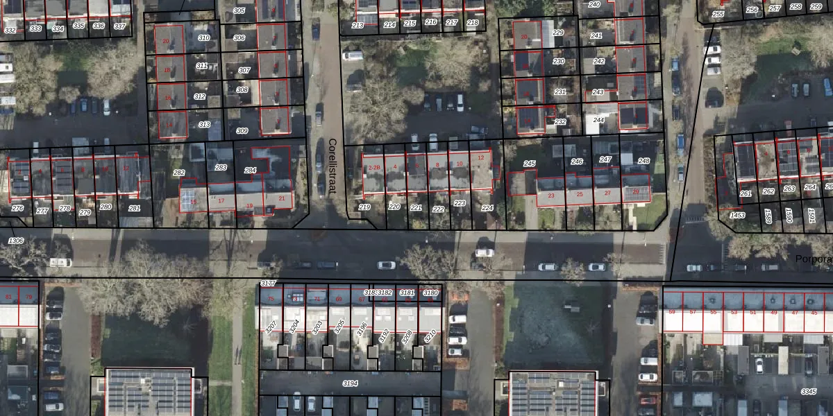 Gebruik de zoekbalk of klik op een perceel om informatie over het perceel te bekijken.