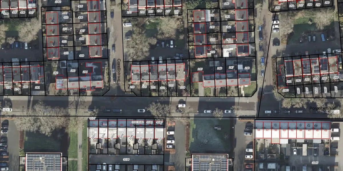 Gebruik de zoekbalk of klik op een perceel om informatie over het perceel te bekijken.