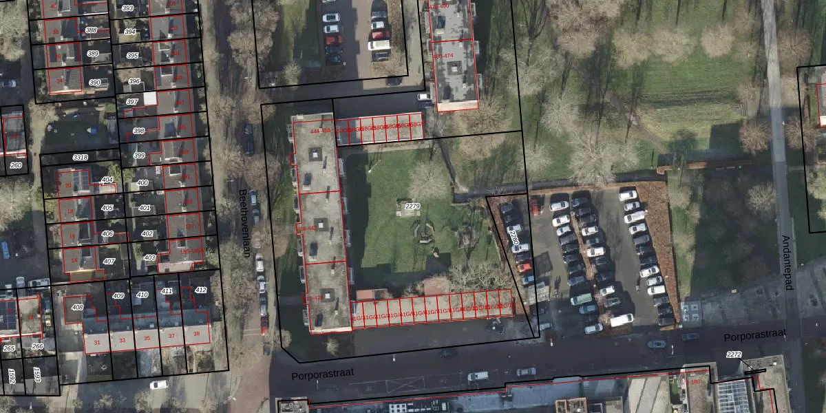 Gebruik de zoekbalk of klik op een perceel om informatie over het perceel te bekijken.