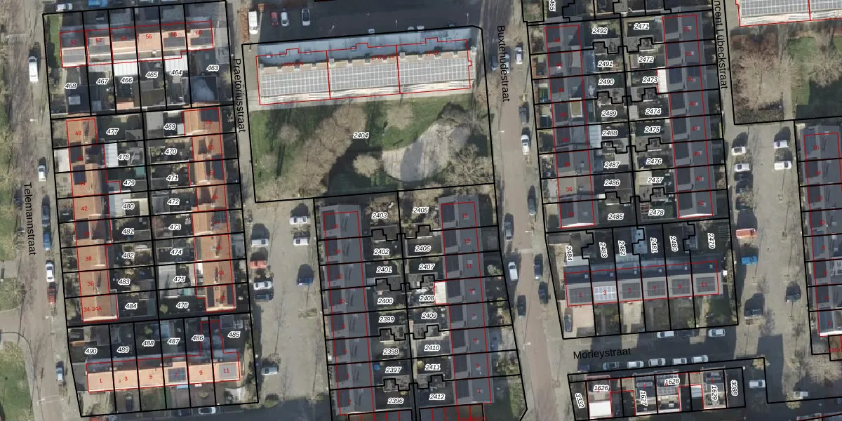 Gebruik de zoekbalk of klik op een perceel om informatie over het perceel te bekijken.