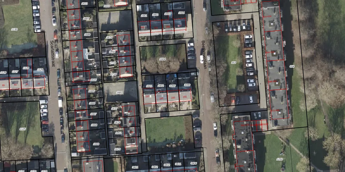 Gebruik de zoekbalk of klik op een perceel om informatie over het perceel te bekijken.