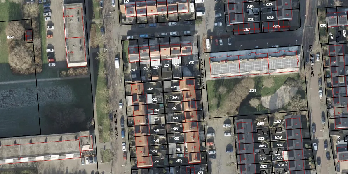 Gebruik de zoekbalk of klik op een perceel om informatie over het perceel te bekijken.