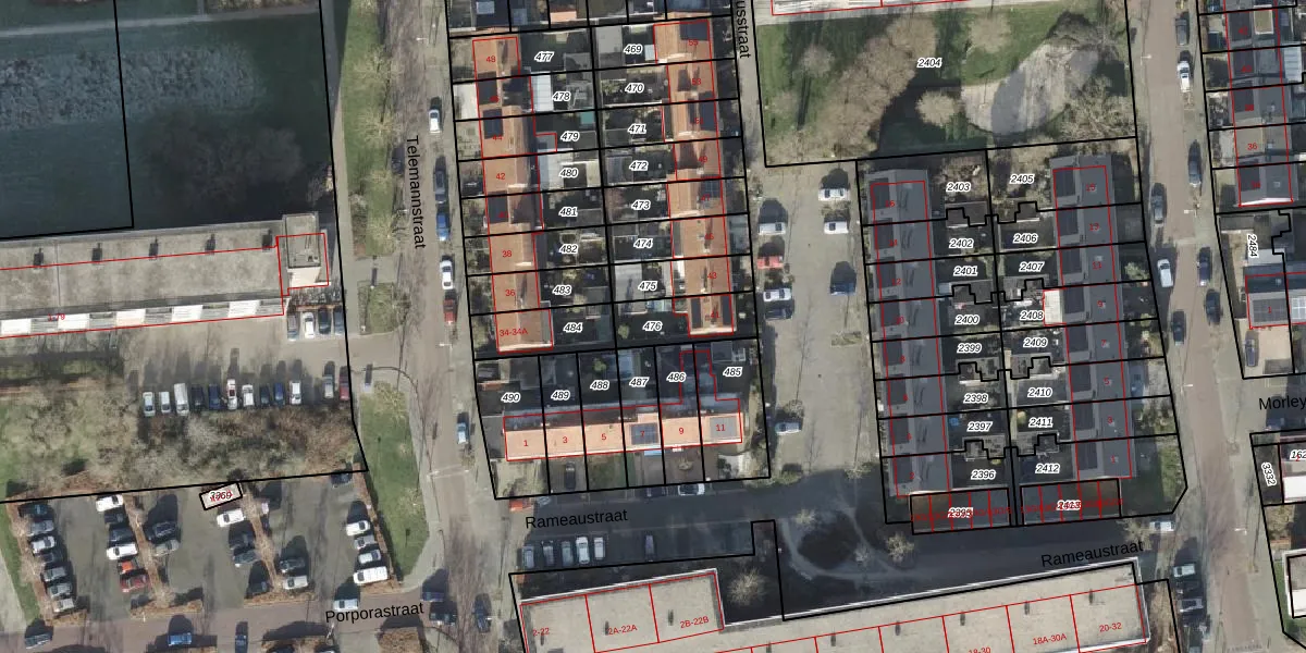 Gebruik de zoekbalk of klik op een perceel om informatie over het perceel te bekijken.