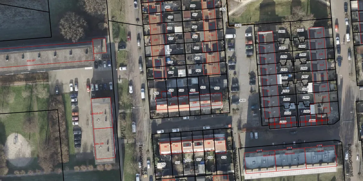 Gebruik de zoekbalk of klik op een perceel om informatie over het perceel te bekijken.