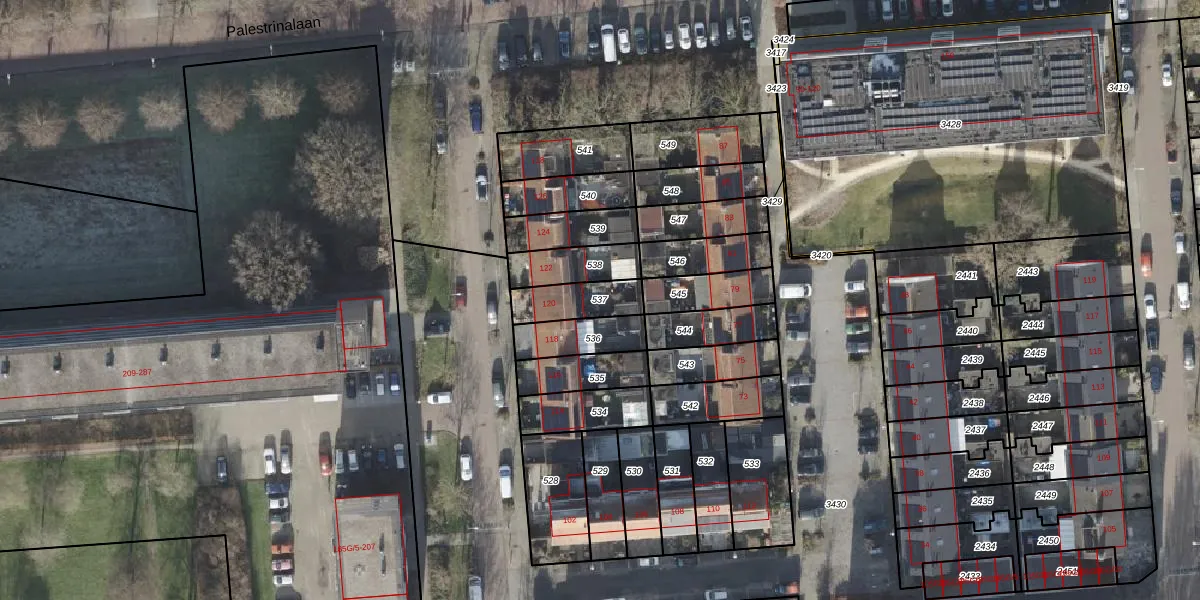 Gebruik de zoekbalk of klik op een perceel om informatie over het perceel te bekijken.