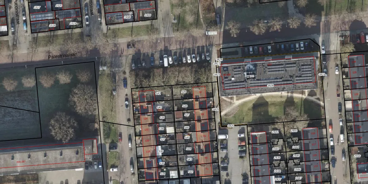 Gebruik de zoekbalk of klik op een perceel om informatie over het perceel te bekijken.