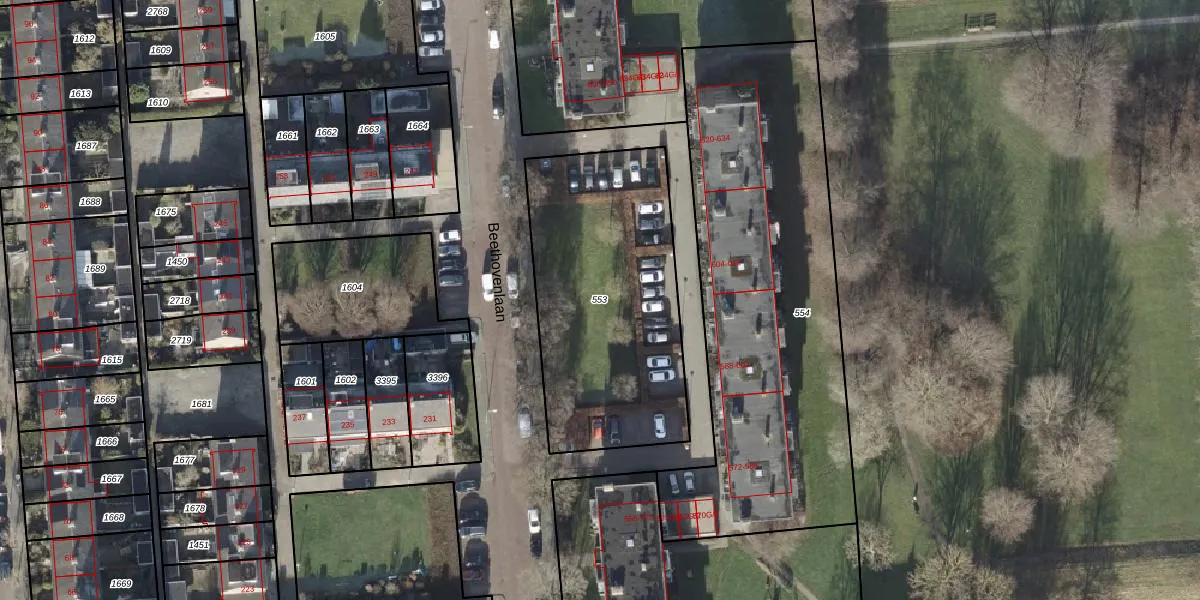 Gebruik de zoekbalk of klik op een perceel om informatie over het perceel te bekijken.