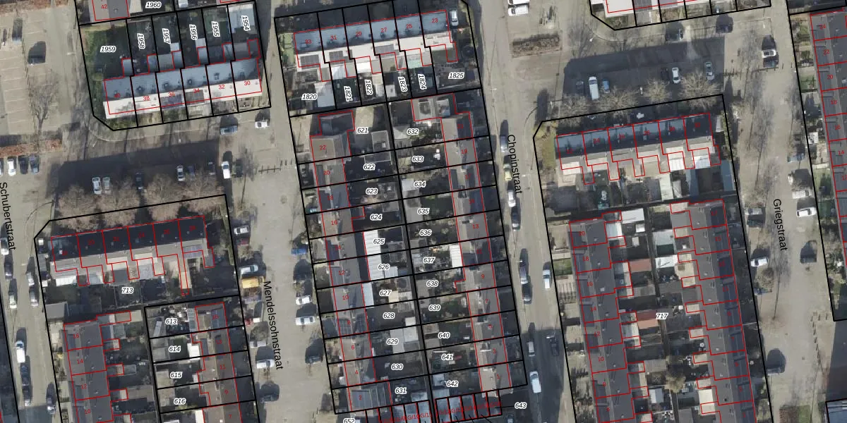 Gebruik de zoekbalk of klik op een perceel om informatie over het perceel te bekijken.