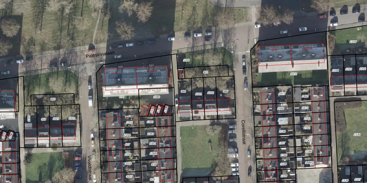 Gebruik de zoekbalk of klik op een perceel om informatie over het perceel te bekijken.