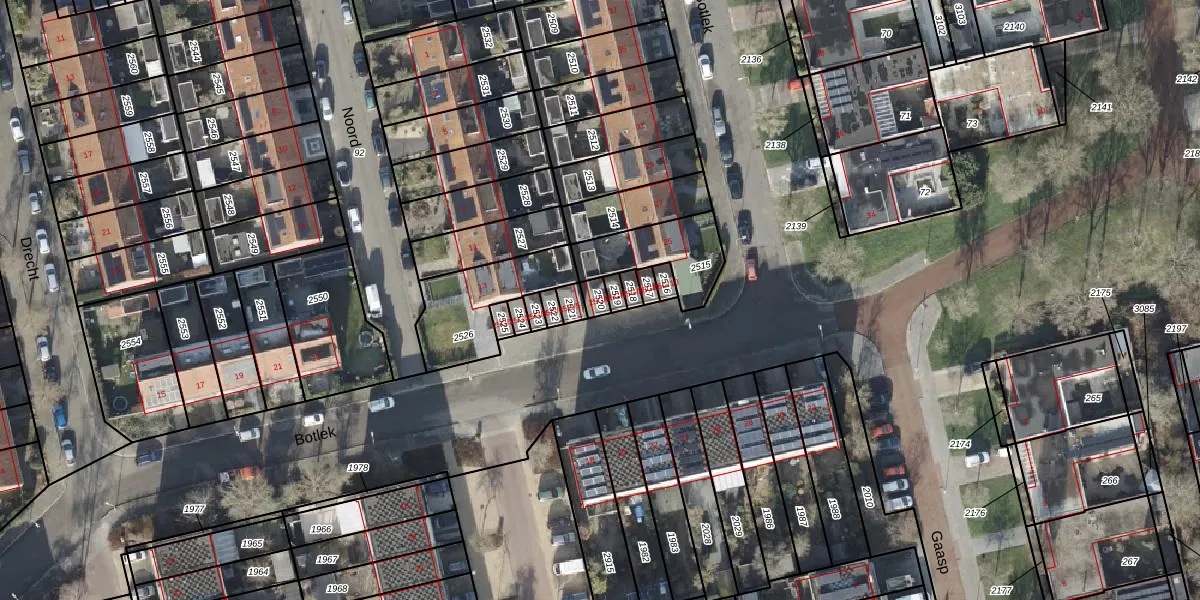Gebruik de zoekbalk of klik op een perceel om informatie over het perceel te bekijken.
