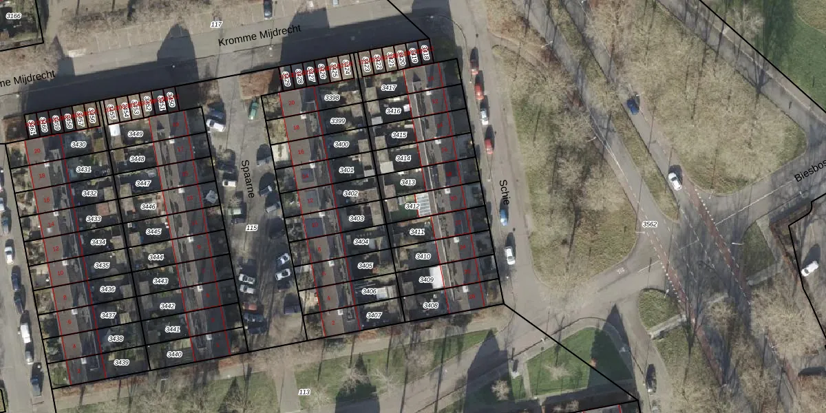Gebruik de zoekbalk of klik op een perceel om informatie over het perceel te bekijken.