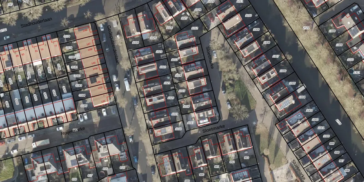 Gebruik de zoekbalk of klik op een perceel om informatie over het perceel te bekijken.