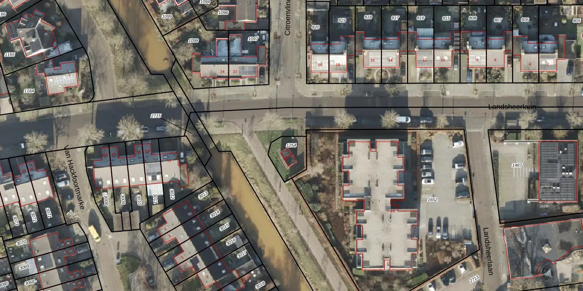 Gebruik de zoekbalk of klik op een perceel om informatie over het perceel te bekijken.