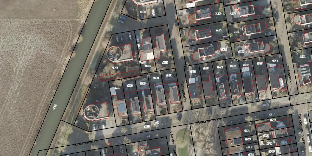 Gebruik de zoekbalk of klik op een perceel om informatie over het perceel te bekijken.