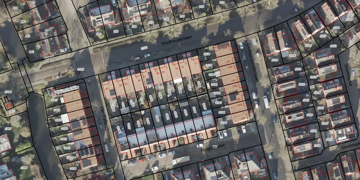 Gebruik de zoekbalk of klik op een perceel om informatie over het perceel te bekijken.
