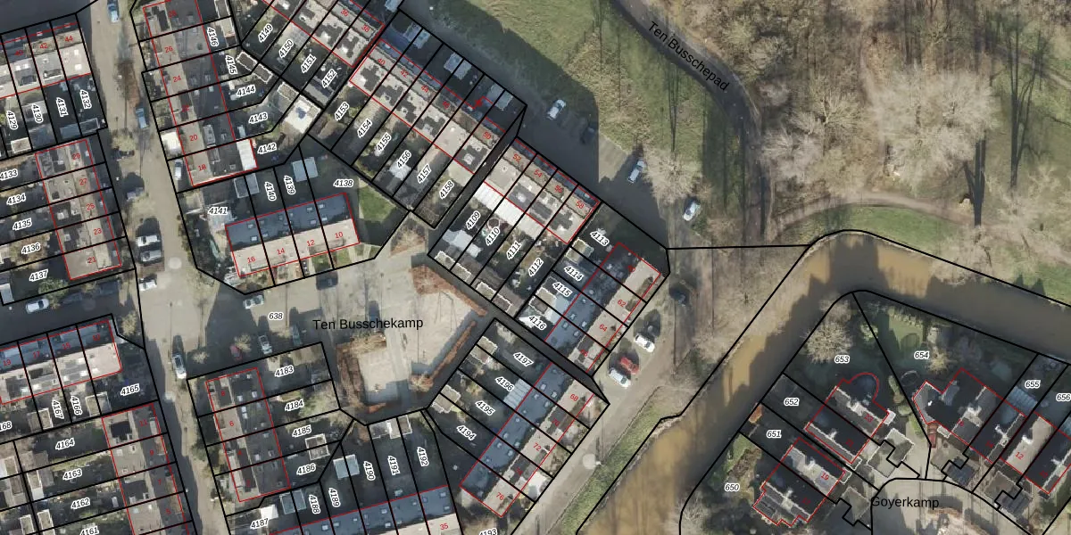 Gebruik de zoekbalk of klik op een perceel om informatie over het perceel te bekijken.