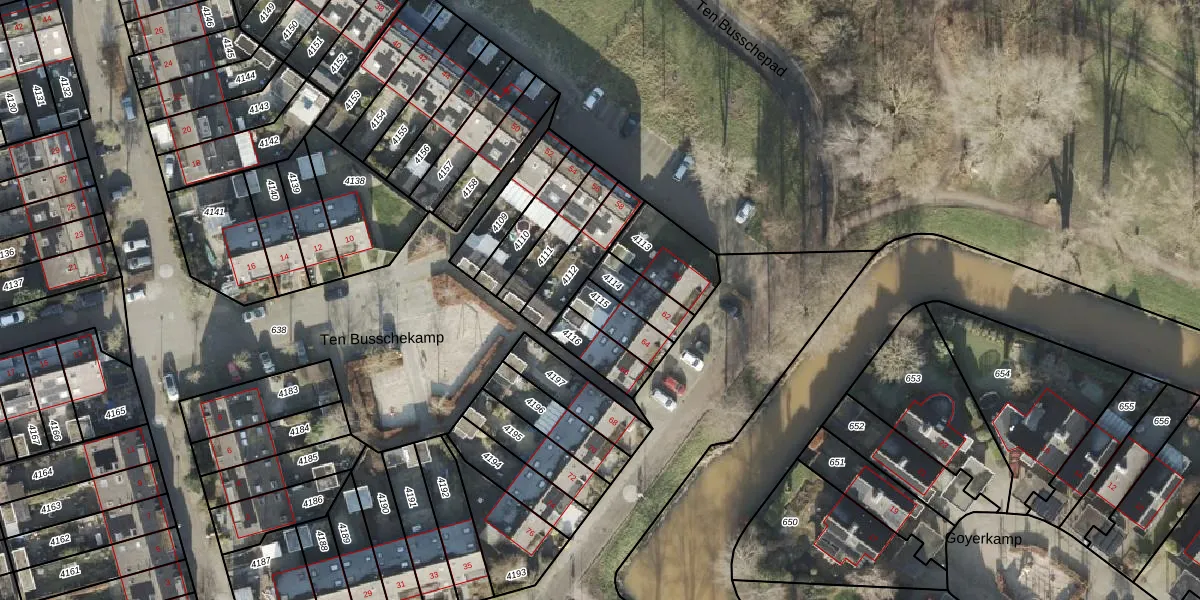 Gebruik de zoekbalk of klik op een perceel om informatie over het perceel te bekijken.