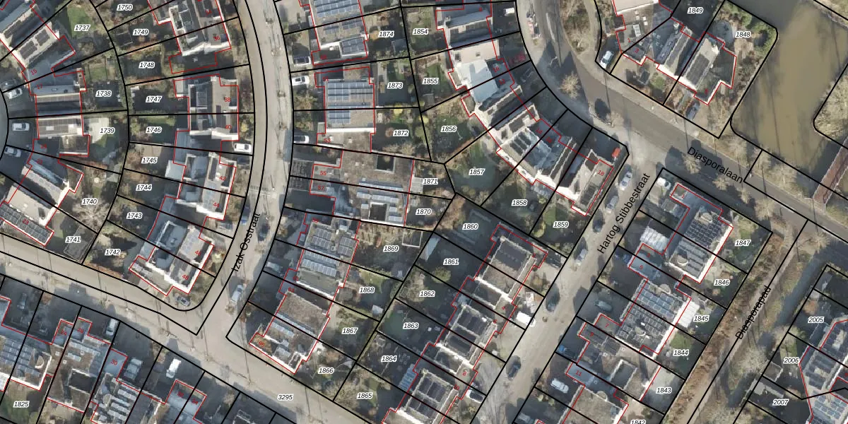 Gebruik de zoekbalk of klik op een perceel om informatie over het perceel te bekijken.