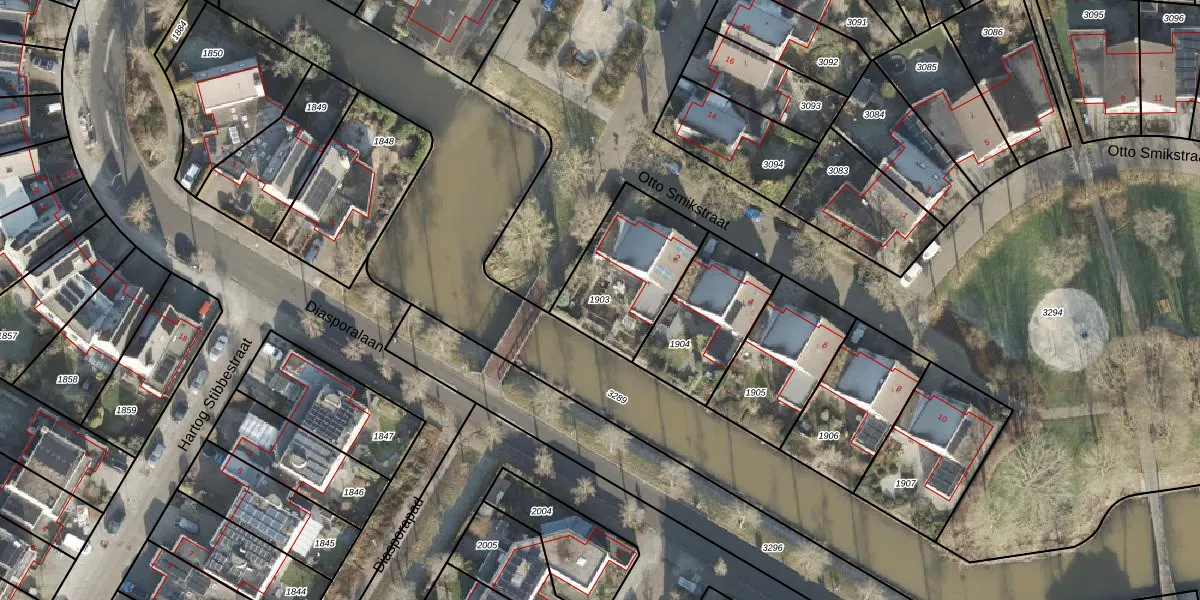 Gebruik de zoekbalk of klik op een perceel om informatie over het perceel te bekijken.