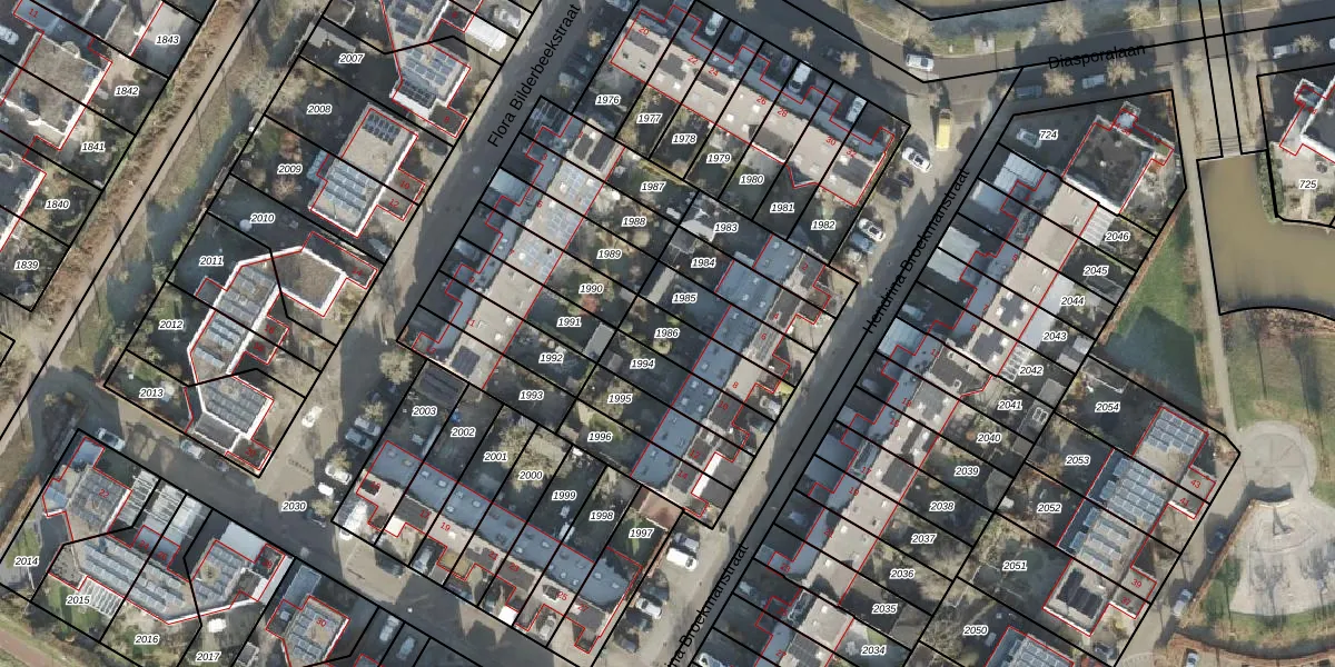 Gebruik de zoekbalk of klik op een perceel om informatie over het perceel te bekijken.