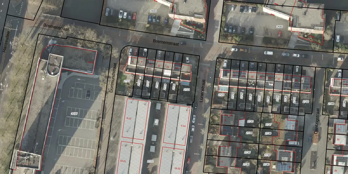 Gebruik de zoekbalk of klik op een perceel om informatie over het perceel te bekijken.