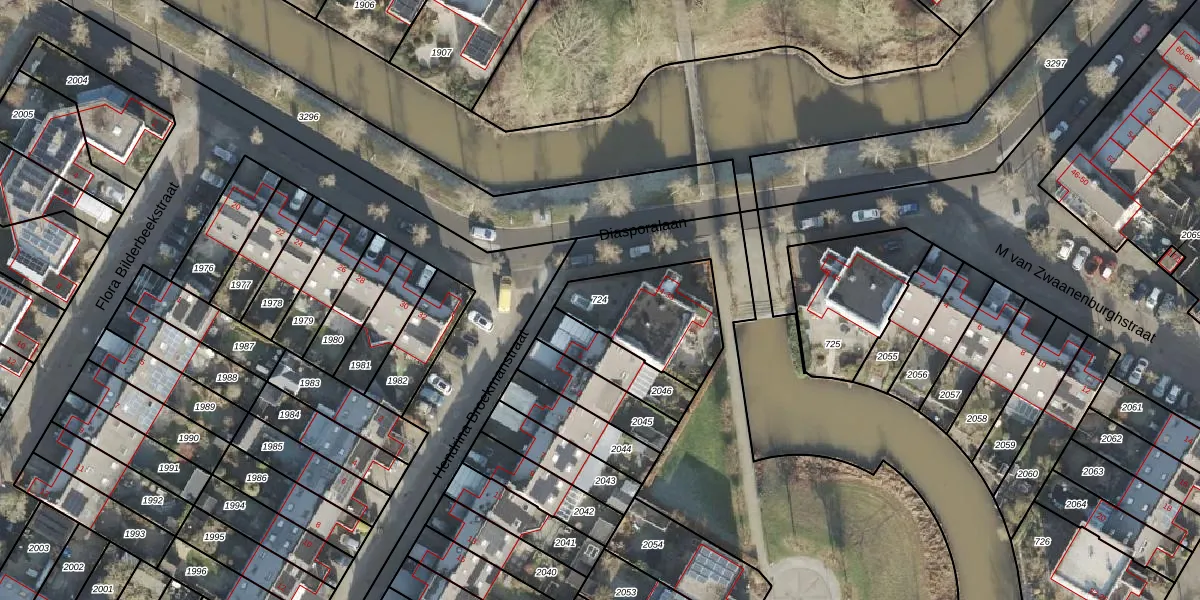 Gebruik de zoekbalk of klik op een perceel om informatie over het perceel te bekijken.