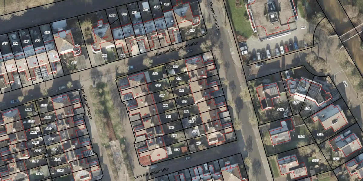 Gebruik de zoekbalk of klik op een perceel om informatie over het perceel te bekijken.