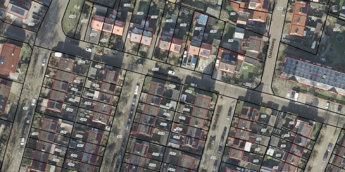 Gebruik de zoekbalk of klik op een perceel om informatie over het perceel te bekijken.