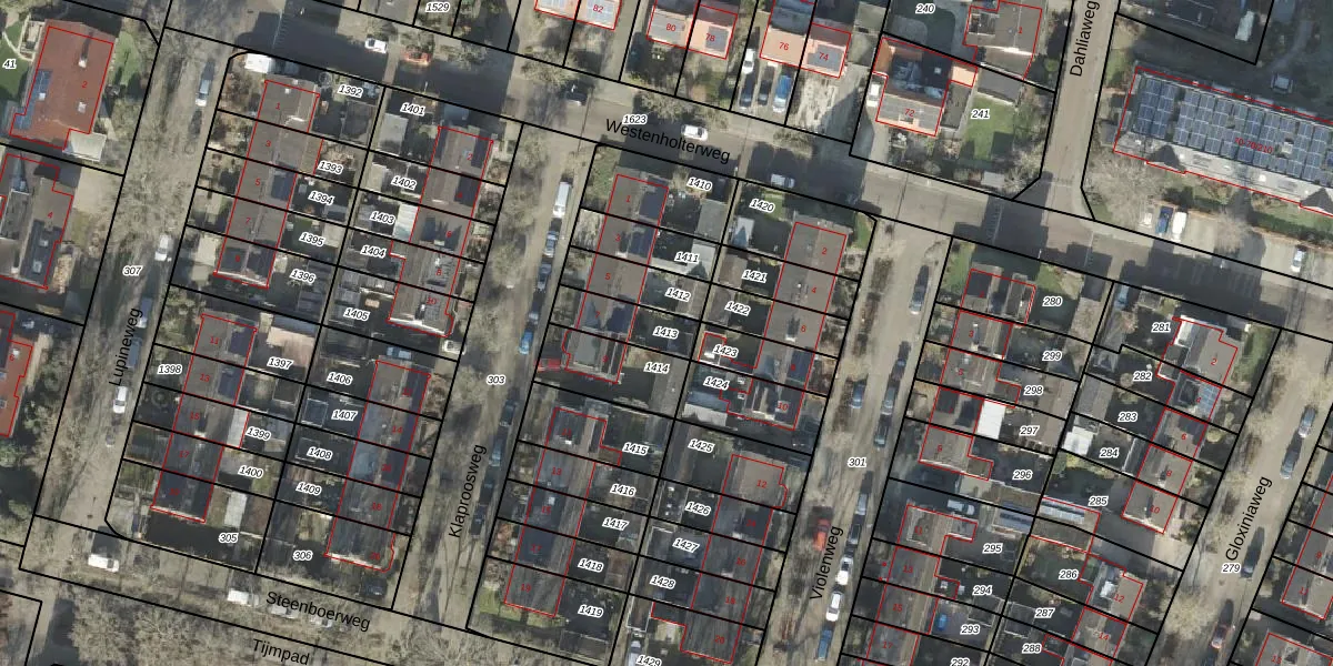 Gebruik de zoekbalk of klik op een perceel om informatie over het perceel te bekijken.