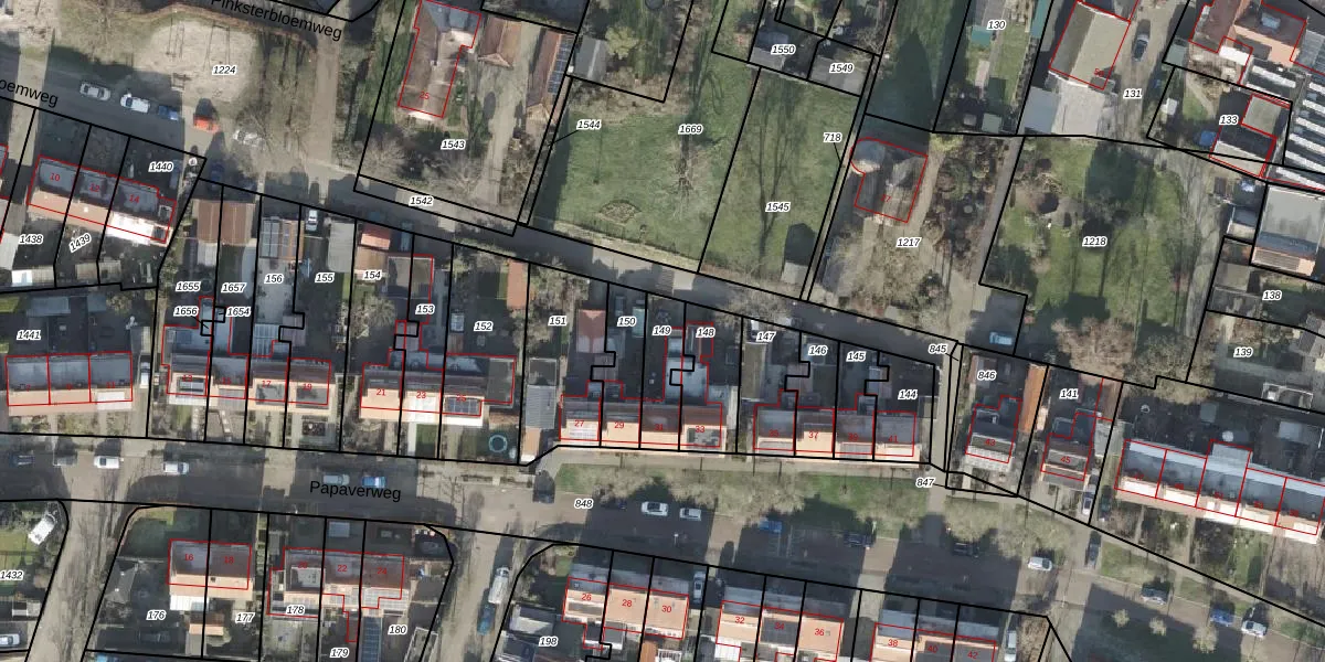Gebruik de zoekbalk of klik op een perceel om informatie over het perceel te bekijken.