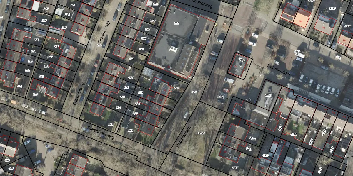 Gebruik de zoekbalk of klik op een perceel om informatie over het perceel te bekijken.