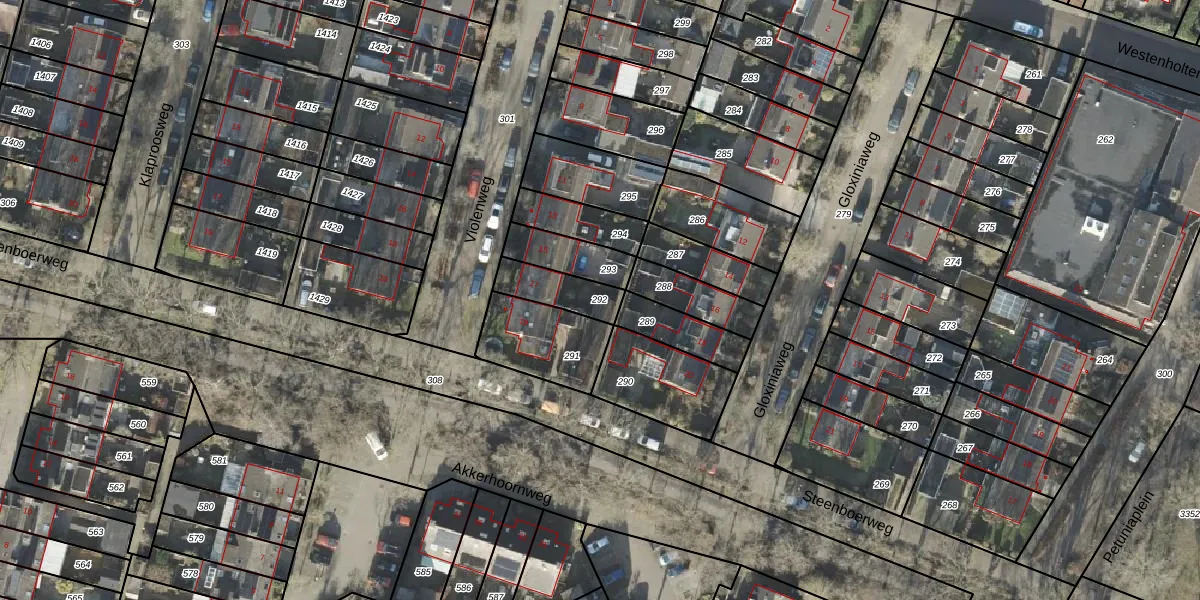 Gebruik de zoekbalk of klik op een perceel om informatie over het perceel te bekijken.